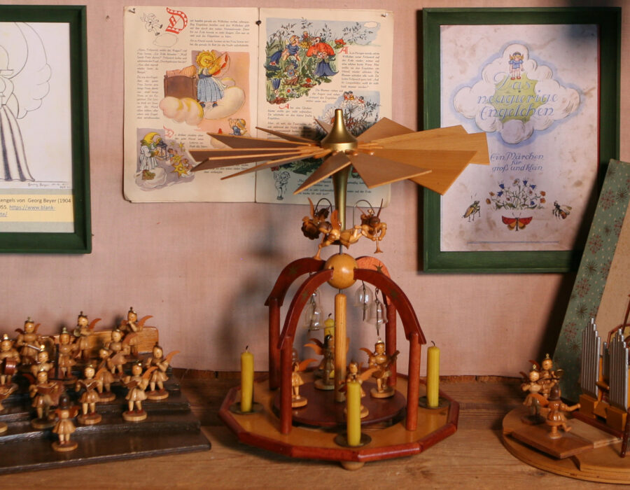 Manches Stück hat da seine ganz eigene Geschichte. So wurde eine besonders große und schöne Ständerpyramide aus Angst vor Diebstahl zum Kriegsende im Heu der Scheune versteckt und vergessen. Als man nun in der Neuzeit wegen eines geplanten Umbaus das Heu mit einem Radlader ausfuhr, lag da plötzlich, wie eine besondere Gabe, die Pyramide in der Schaufel. Diese wird natürlich auch zu sehen sein.