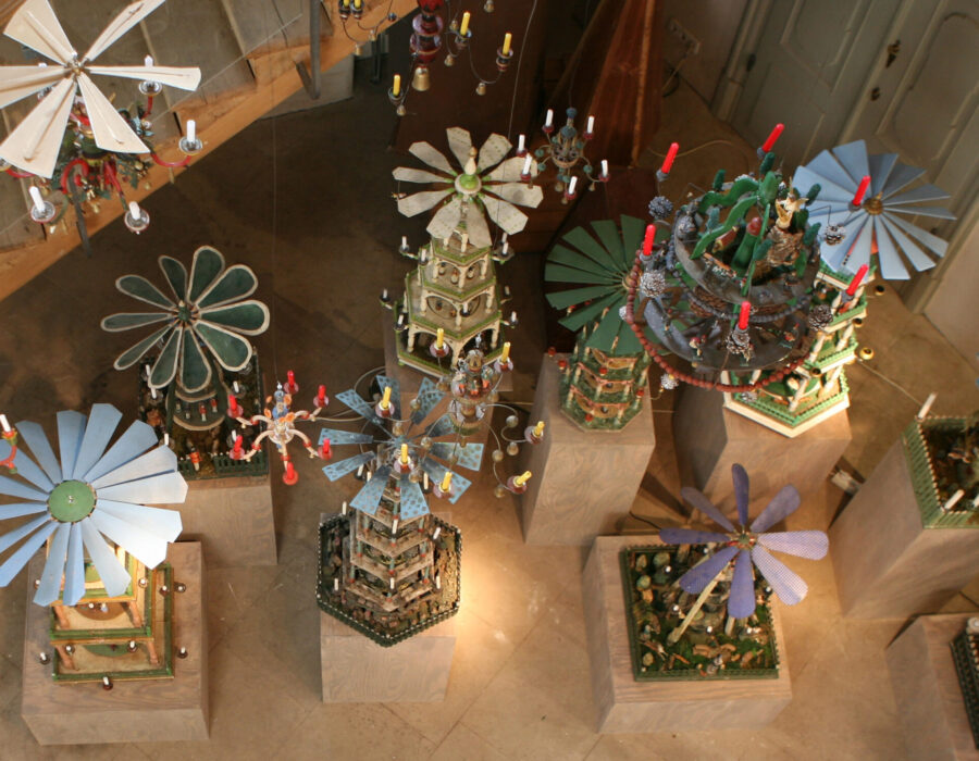 Manche Besonderheit, wie z. B. eine detailreiche Zinnpyramide aus der Zeit Ende des 19. Jahrhunderts, wird die Ausstellung bereichern. Auch zu den eher selteneren Stücken gehören Pyramidenberge aus Pappe und Papier, wie sie etwa in Wünschendorf bei Willy Dähnert gefertigt wurden.